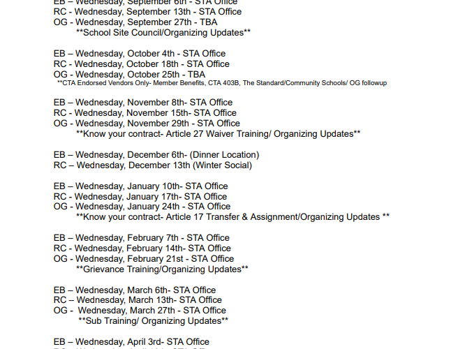 STA Executive Board/Rep Council Calendar July 2023 - June 2024